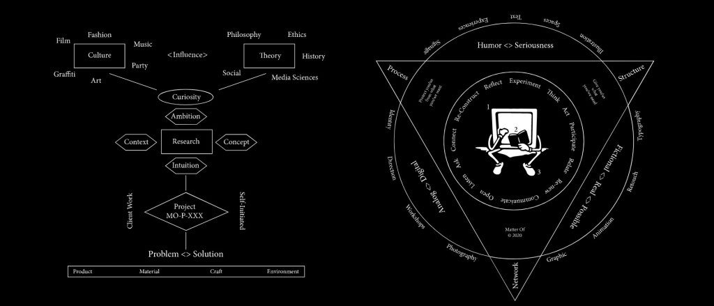 Matter Of is focused on transborder visual practices. We work on the practical design as well as the conceptual consultancy for institutions and projects. Besides commissioned work we initiate own projects and are always interested in collaborations. We give lectures and hold workshops at art & design academies and other institutions.